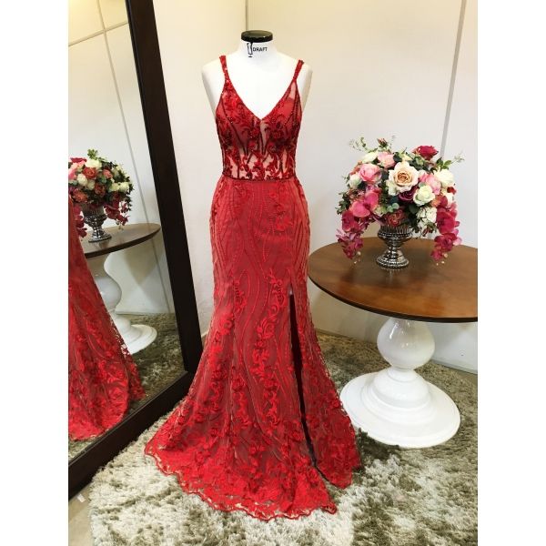 Vestido longo de festa M-0678 Vermelho