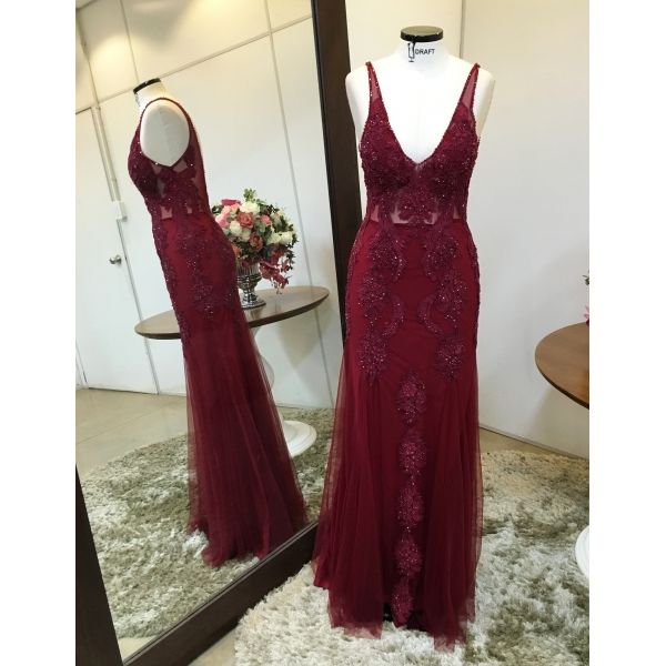 Informações do produto: Vestido longo de festa M-5549B Marsala