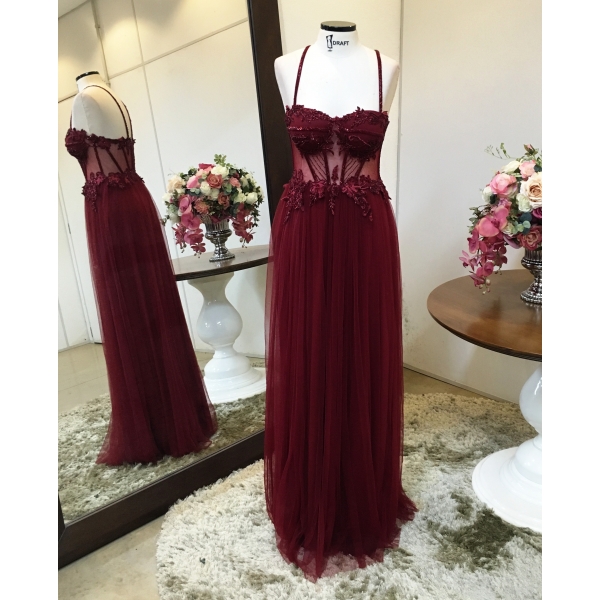 Informações do produto: Vestido longo de festa M-6056 Marsala